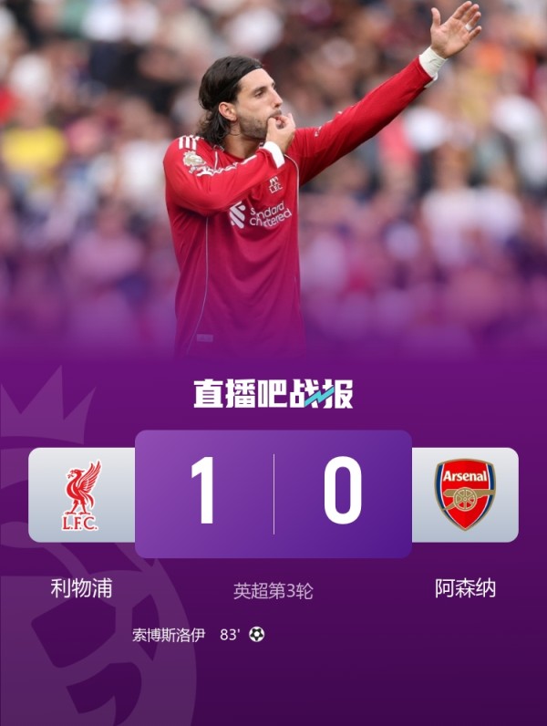 3连胜登顶!利物浦1-0阿森纳 索博任意球世界波 维尔茨萨利巴伤退
